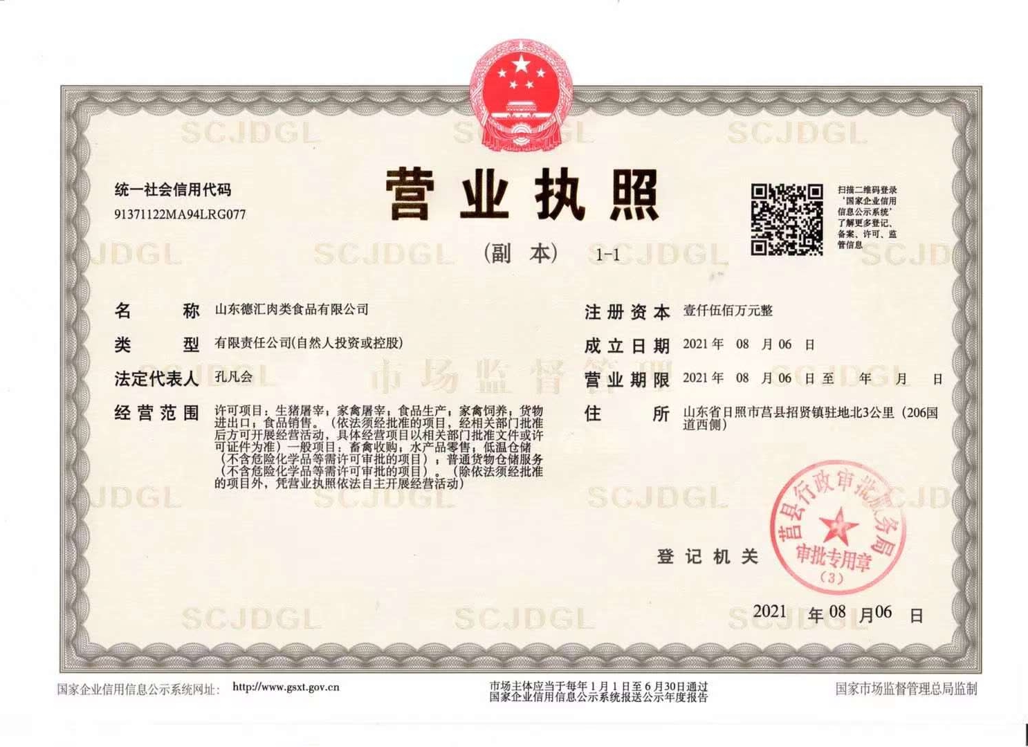 山東德匯肉類食品有限公司坐落于素有“玫瑰之鄉”之稱的山東省日照市莒縣招賢鎮,是一家集肉雞養殖、屠宰、加工、銷售為一體的綜合性企業。 公司占地面積83畝,有辦公樓、宿舍樓、職工餐廳、生產車間、冷庫、污水處理廠等配套設施。 山東德匯肉類食品有限公司成立伊始,本著以“正向.專注.團結.進步”企業文化,“以質量求生存,以信譽謀發展”經營理念,本著“德者匯聚,食者心安”的經營宗旨,把“做最安全雞肉產品”作為企業使命,為畜牧業發展和食品安全而不懈努力!